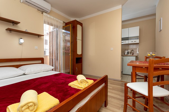 Apartman se nalazi u prizemlju naše obiteljske kuće (odmah do apartmana [1] i apartmana [2]) i može primiti ukupno tri osobe. Opremljen je TV-Sat i bežičnim Wi-Fi internetom. Sastoji se od kuhinje/ dnevnog boravka, spavaće sobe i kupaonice.