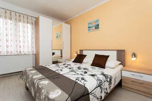 Soba: pruža smještaj za dvije osobe. U sobi se nalazi bračni krevet dok se pomoćni krevet na razvlačenje (za dvije osobe) nalazi u dnevnom boravku.