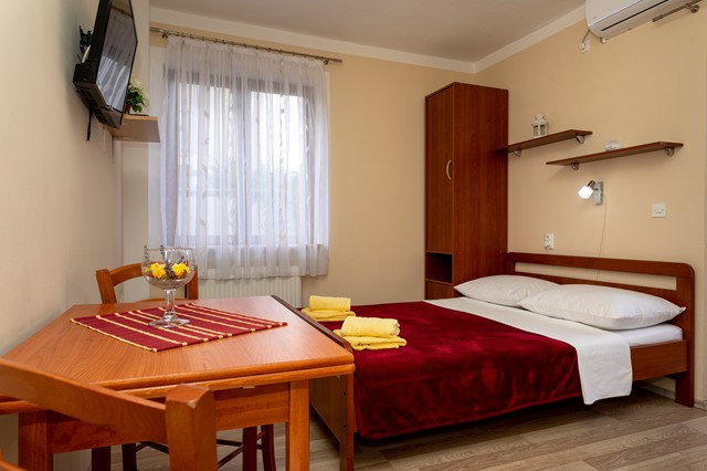 The apartment is located on the ground floor of our house (next to the apartment [1], and apartment [2]) and can accommodate a total of three people. It is equipped with satellite TV and wireless Wi-Fi. The apartment consists of a kitchen / living room, bedroom and bathroom.